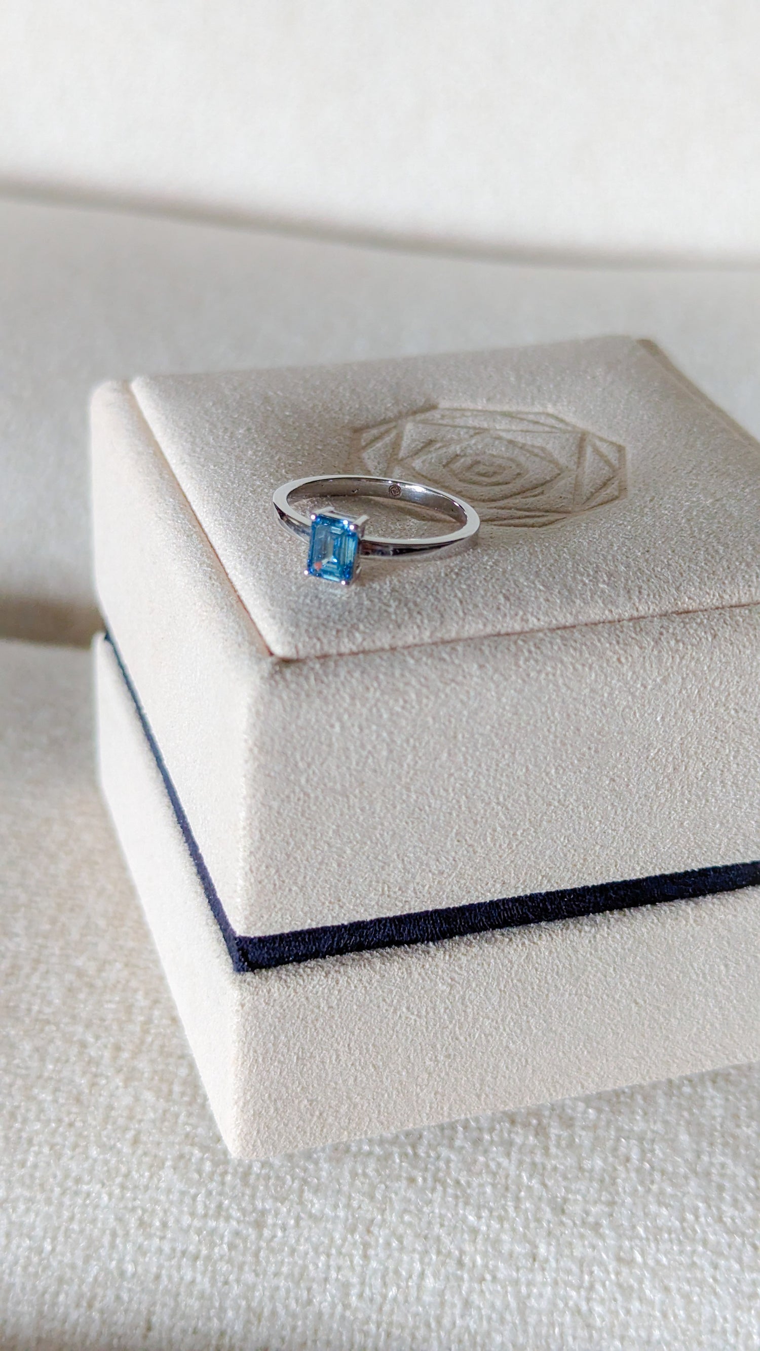 Emerald Cut Blue Diamond set in 14k White Gold.
